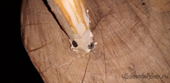 Возьмём ножки и снимем с них кору ножом. Фото и размеров нет.