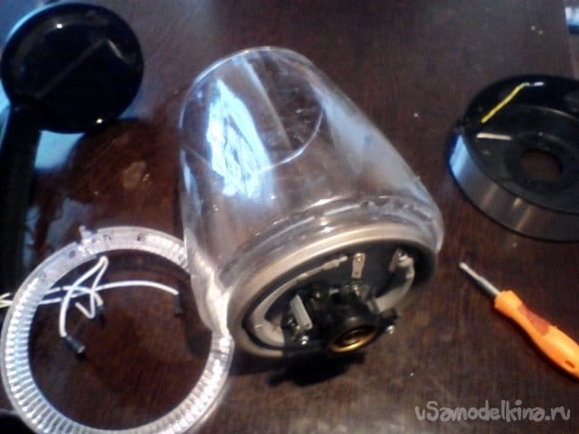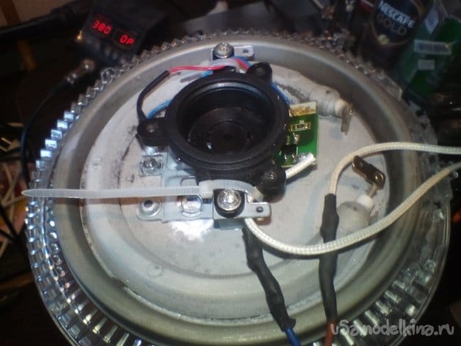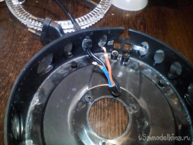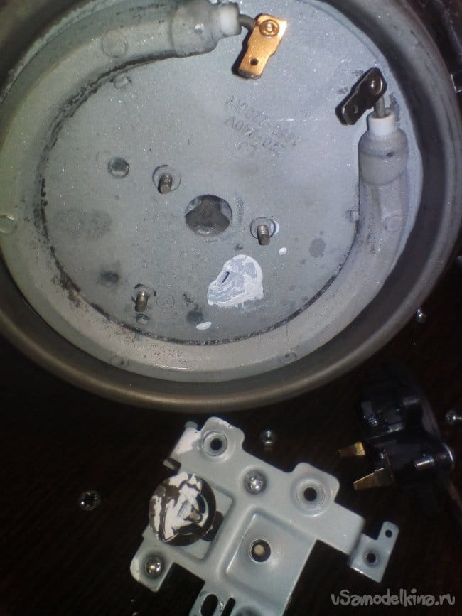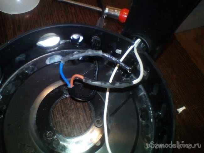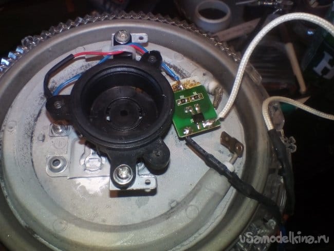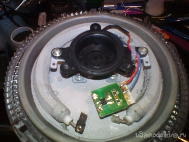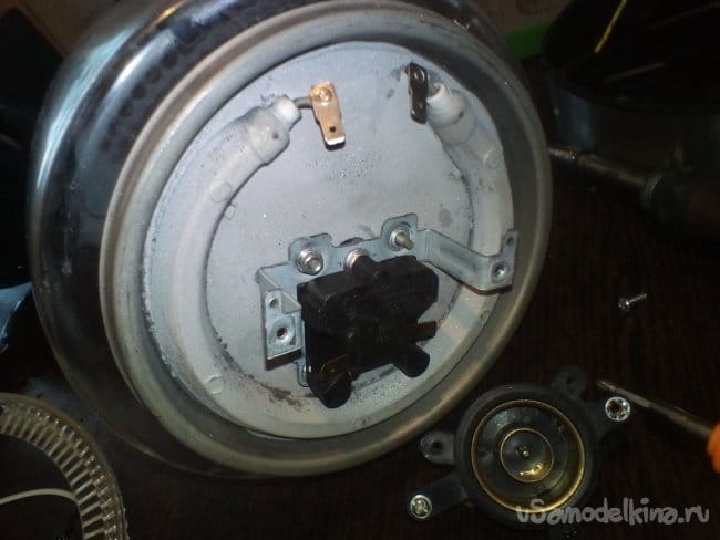 Разобрал, удалил ненужные детали типа контактных колец, термопредохранителя, проводов и подсветки.