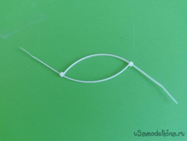 2. Стяжка/хлястик. Обычная пластиковая стяжка, конечно же, у каждого в кармане. Длины маленькой не хватает, в этом случае их надо соединить две, создать петлю, накинуть её на "ответку" и затянуть. В отличие от скрепки, которая может слететь, этот способ более надёжный. Но, на мой взгляд, нерациональный с точки зрения расходов, так как снятое устройство потом потеряется, а скрепка всегда живёт у меня в надёжном месте под рукой.
