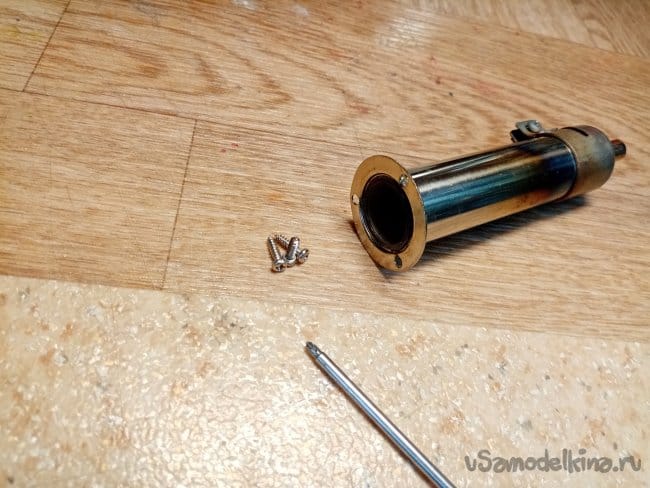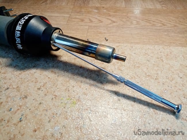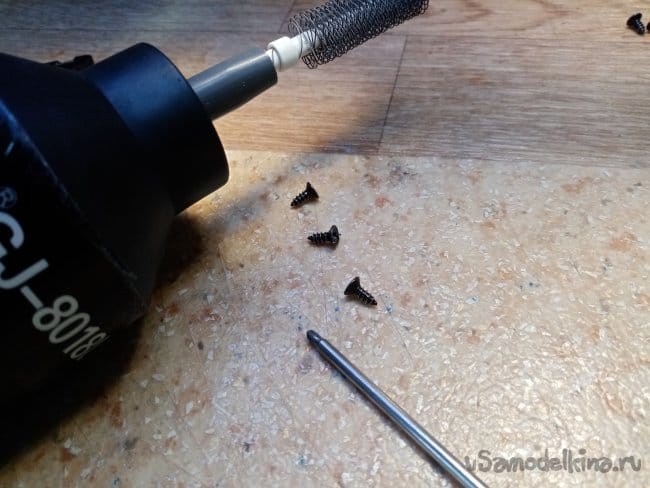 Для продолжения работы нужно отремонтировать нагревательный фен. При включении не работает. Откручиваю болтики крепления трубки кожуха фена.