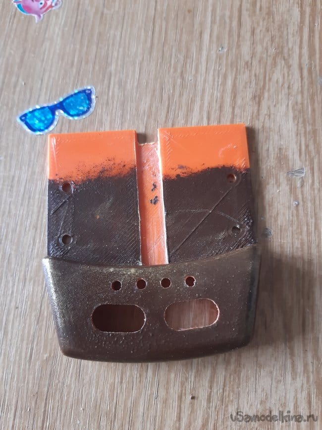 Видимая часть пластика тоже подверглась окрашиванию и покрытию лаком.