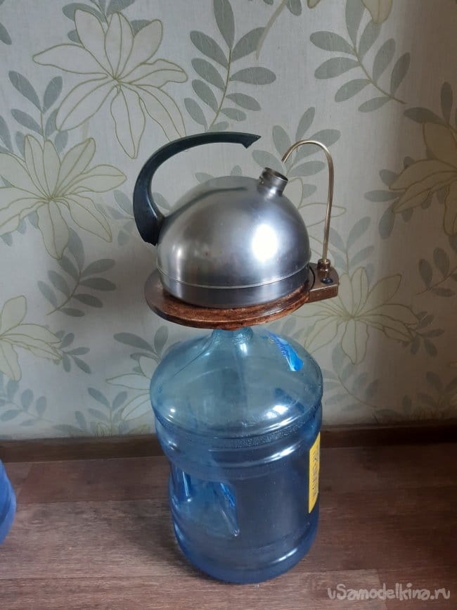Мне понравилось, но размер площадки у подобных помп не превышал 120 мм в диаметре. А наш любимый чайник – 200 мм. Да еще и носик у него сбоку, а крышки нет. Значит не получится его поставить на подставку.
