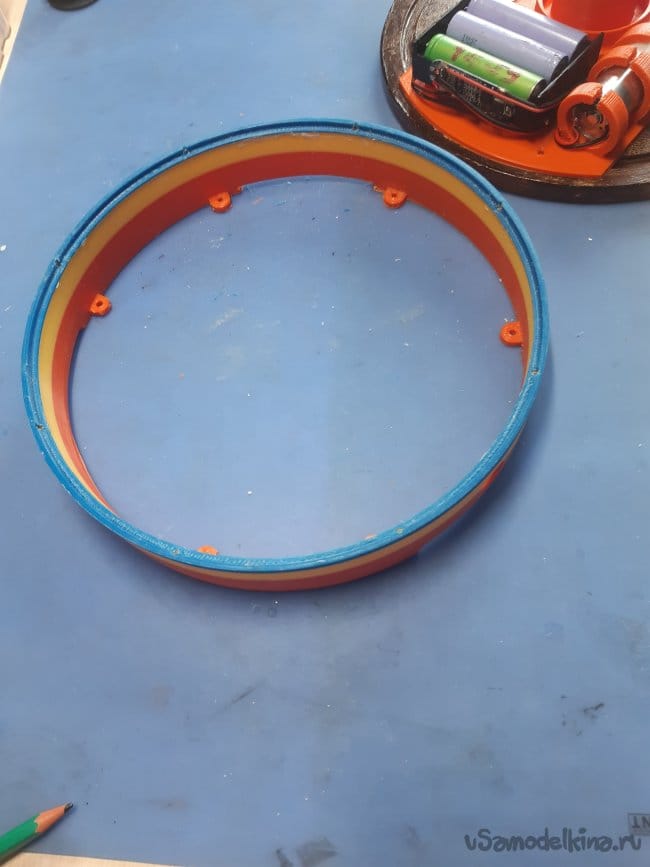 После того как я добавил электроники, мне захотелось спрятать начинку под крышку. Поэтому напечатал еще пару элементов. Для печати я использовал остатки пластика, поэтому элементы разноцветные. Под краской все равно не видно.