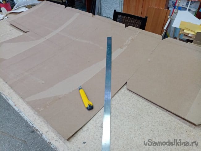Все цифры есть в наличие длина, ширина, высота. Начинаю размечать прямо на картонных заготовках.