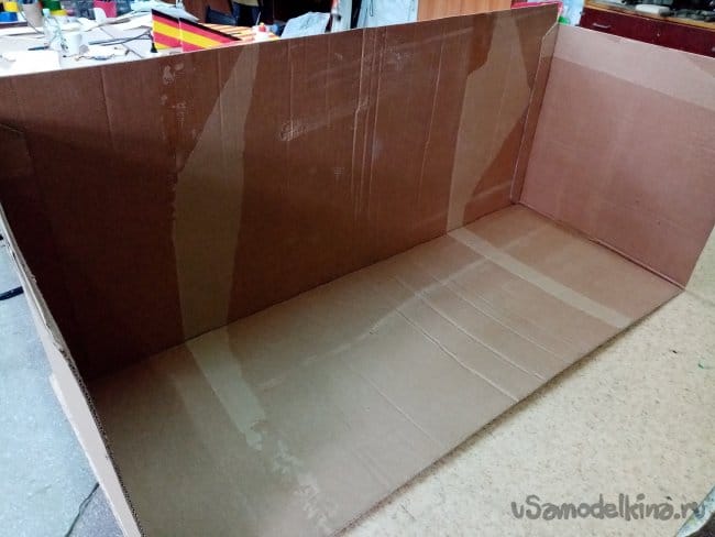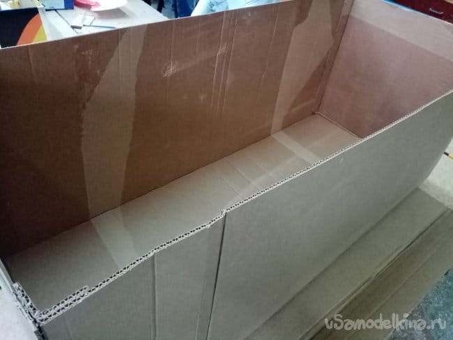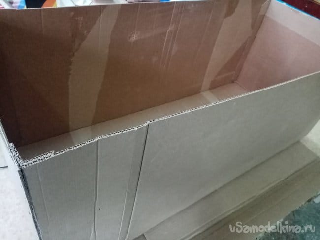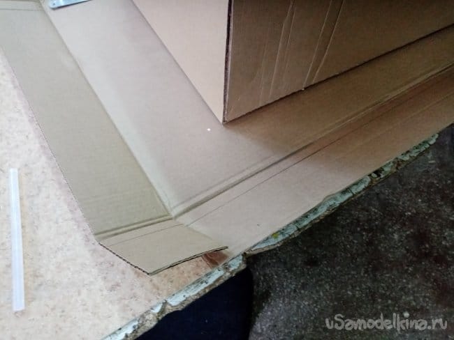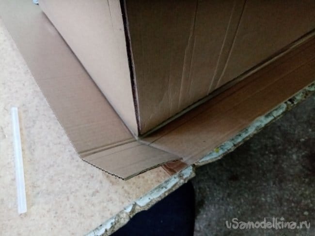 Размечаю и вырезаю недостающую стенку, отгибаю клапана. Один самый длинный клапан разрезаю на отдельные отрезки. При нанесении клея на длинную заготовку он может остыть раньше , чем успею приклеить клапан..