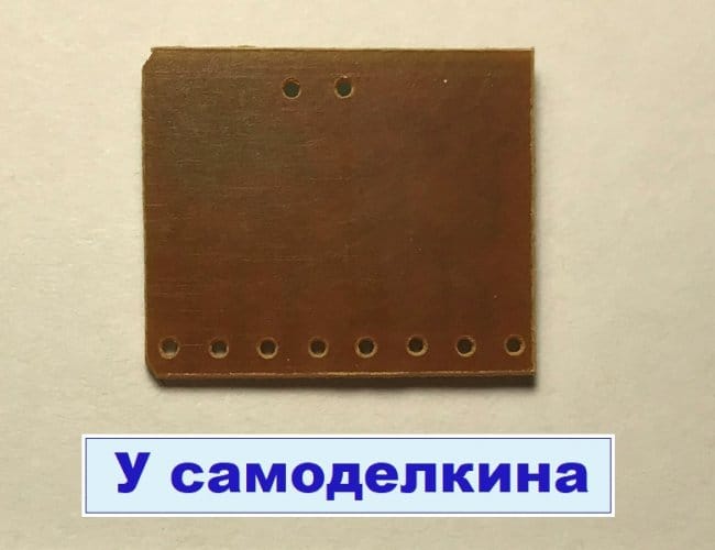 Примечание: На рисунке 5 вместе с со схемой электрической принципиальной приводится эскиз модуля – печатной платы размером 20 х 16 мм с ИМС-капелькой. Для упрощённого обозначения выводов модуля DA1 на схеме, его выводы условно пронумерованы от 1 до 10.