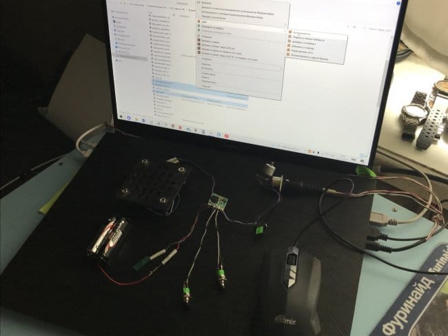 Далее испытание МФЗ осуществлялось от автономного источника питания – двух последовательно соединённых элементов типоразмера AA-size с результирующим напряжением +3 Вольта.