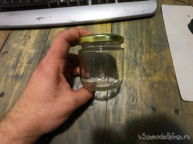Всем привет, живет у меня дочь под столом, вернее домик там у нее, где стоит кровать. По вечерам ей там неуютно ввиду темноты, просит меня каждый вечер: «папка, включи баночку…» А подобную баночку, только из трехлитровой банки я уже делал ранее. Но этот светильник великоват и ярковат, чтобы под него спать. Вот я и решил сделать для нее ее собственный светильник с собственным выключателем, работающий от сети, так как она постоянно переживает, что сядут батарейки. Собрал я его минут за 15, радости были полные штаны. Обо всем по порядку!