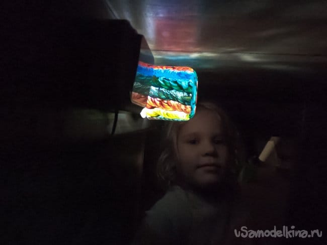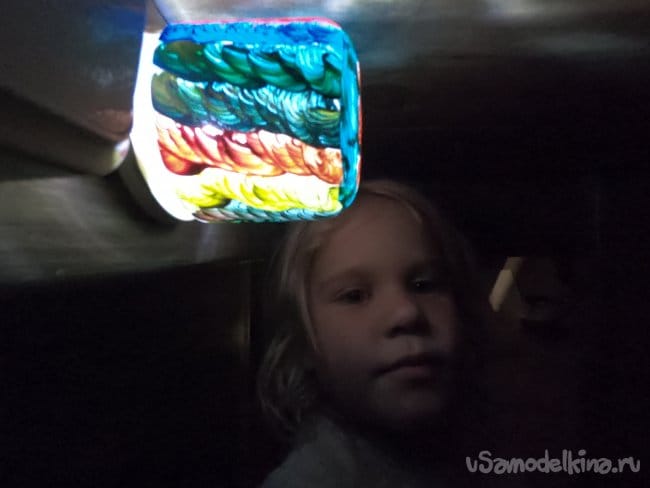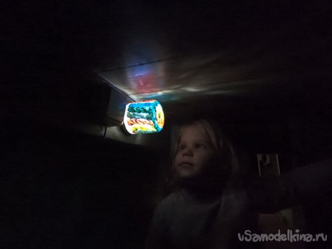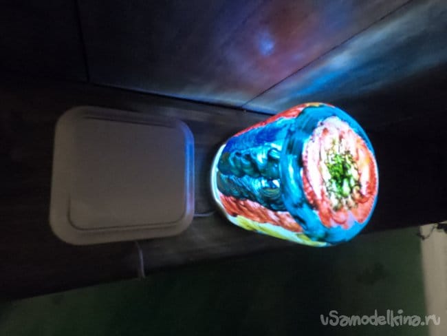 Прикрутил крышку в том месте, где дочь ткнула пальцем, в аналогичном месте поставил и включатель. Горит светильник отлично, дочь очень рада и не боится. Прогорела лампа всю ночь, проблем не обнаружено.