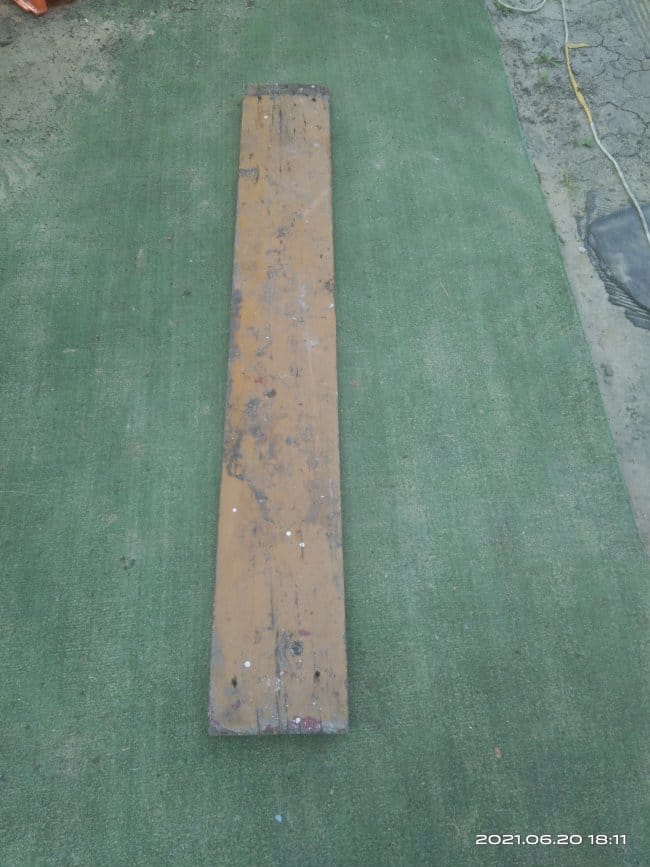 Для изготовления этой самоделки был взят обрезок доски, оставшийся от ремонта пола. С помощью циркулярной пилы я распустил ее на полосы толщиной в 1,5 см. Количество таких полос будет зависеть от того, насколько длинной будет ваша шпалера. Самое муторное в изготовлении этого проекта была его шлифовка и окраска. Те места, где доска была пропилена отшлифовал машинкой. Верхняя же часть доски, где изначально была половая краска, я оставил без изменений. Т.к. там лакокрасочное покрытие держалось очень прочно, то убрал только там, где краска немного отслаивалась. Остальное же оставил без изменений. Затем малярной лентой обмотал все полученные полосы и прокрасил боковые части одним махом. После этого окрасил уже остальные части. Концы планок красить пока не стал, окрашу после окончательной сборки, тем более что они будут еще подгоняться по размеру, но уже в собранном состоянии. Шпалеры я решил не делать стационарными, пусть уж лучше после садово-огородного сезона они будут убираться куда-нибудь под навес, или в другое укромное место до следующей весны. Затем возник вопрос — а, собственно куда убирать такие вещи? Они же будут объёмными и достаточно большими. После недолгих раздумий пришла "мысля" сделать их складными, а ножки съёмными. Вот от этого уже и плясал.