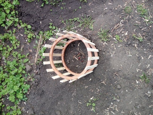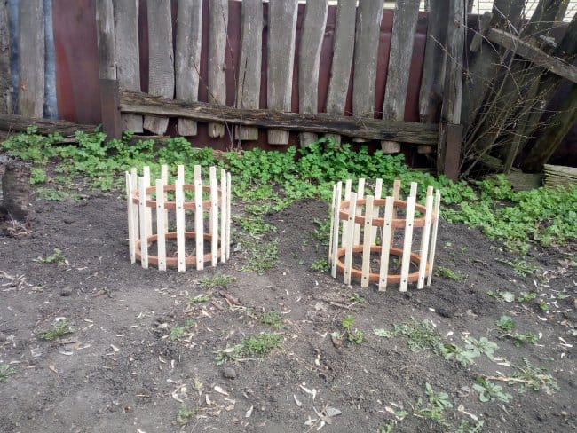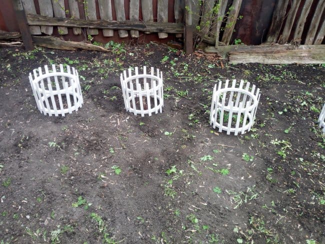 В конечном итоге получаю такие вот простые, что в изготовлении, что при установке защитные ограждения для растений. Конечно же благодаря материалу из которого изготовлены круги они не долговечны, но сама идея имеет право на жизнь.