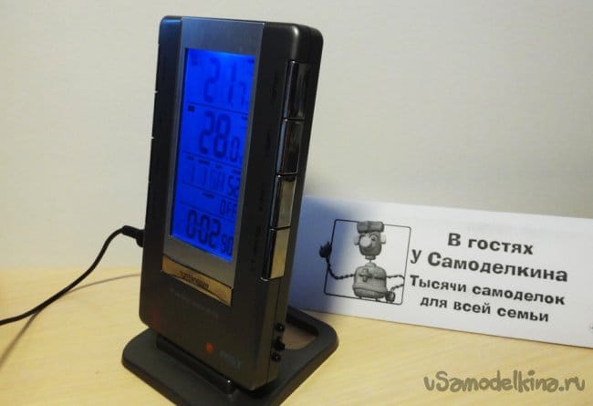 Все в ней хорошо: показывает температуру около станции, температуру с трех внешних датчиков (в комплекте идет один), время, дату, есть будильник, подсветка, запоминает минимум и максимум температуры – в общем эдакий гаджет «все в одном».