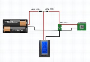 Внимательно проверьте правильность соединений (полярность), переведите микропереключатель в положение работы от батарей (на схеме положение ползунка влево), подключите повербанк или БП к USB-разъему. На понижающем модуле должен загореться красный светодиод. Для контроля можно измерить напряжение, поступающее на микропереключатель: оно должно быть равно примерно 3.3V. Я использовал для проверки обрывов и напряжение эту ручку - мини тестер.
