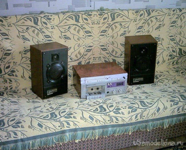 Так повелось, что для дарения на дни рождения я, человек с техническим складом ума, все время выбирал различные технические подарки. Время было сложное, денег было немного, поэтому многие поделки делались своими руками. Этот своеобразный «музыкальный центр» я тоже сделал на подарок. Чудом осталась пара электронных фотографий на память.