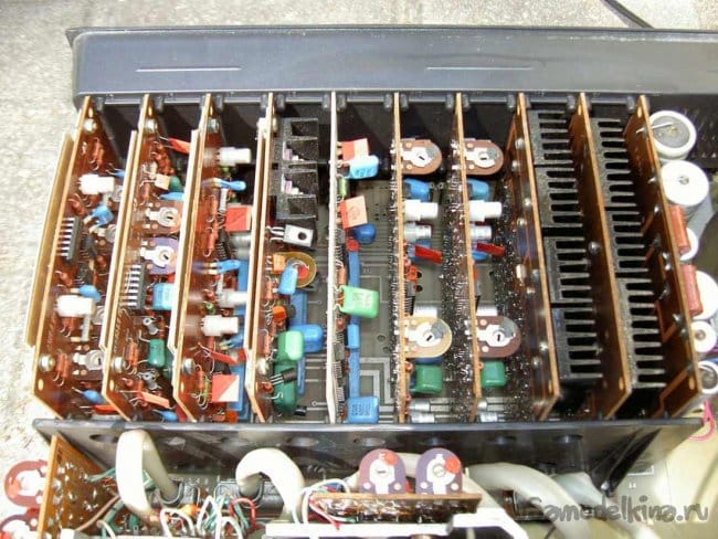 И последний штрих регулятор тембра, который отсутствует в «Орель». Без него звук не очень, все равно хочется подъема высоких и низких частот. Тогда моду набирали активные электронные регуляторы тембра. Я сделал регулятор на базе TDA1074A, а резисторы управления врезал в панель над счетчиком.