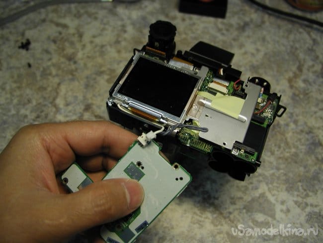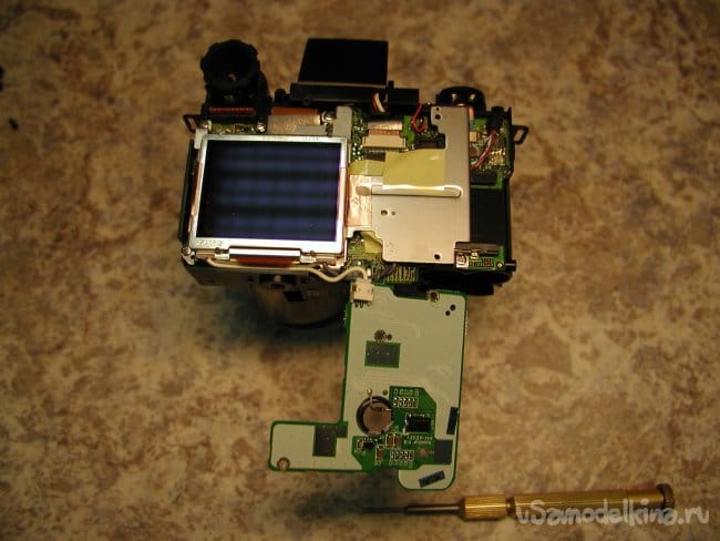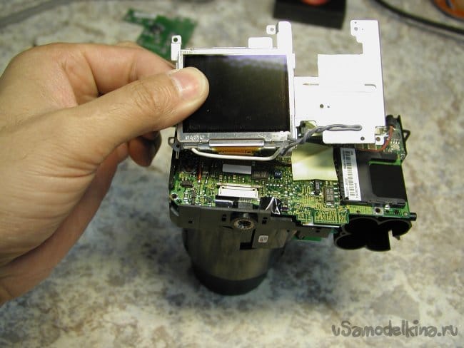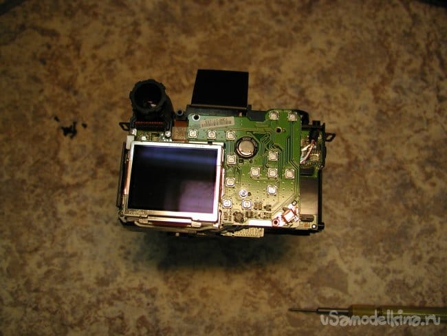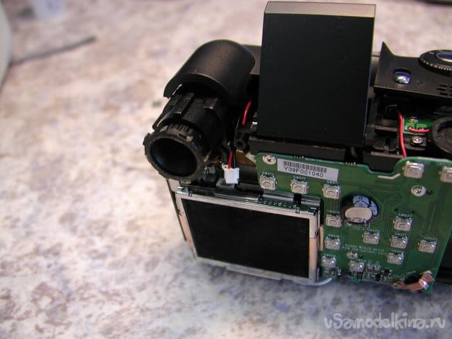 Для её демонтажа нужно снять видоискатель. В этой модели он представляет собой маленький дисплей . Мне такой вариант нравится. Поскольку разрешения этого мониторчика весьма грубое, он показывает не очень качественную картинку. Но как не странно, это позволяет хорошо увидеть все ошибки в цветопередаче и освещении объекта съемки. Вовремя можно перейти в режим «мануал» и исправить недочеты.
