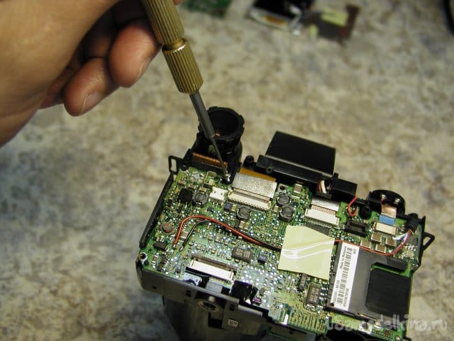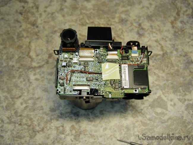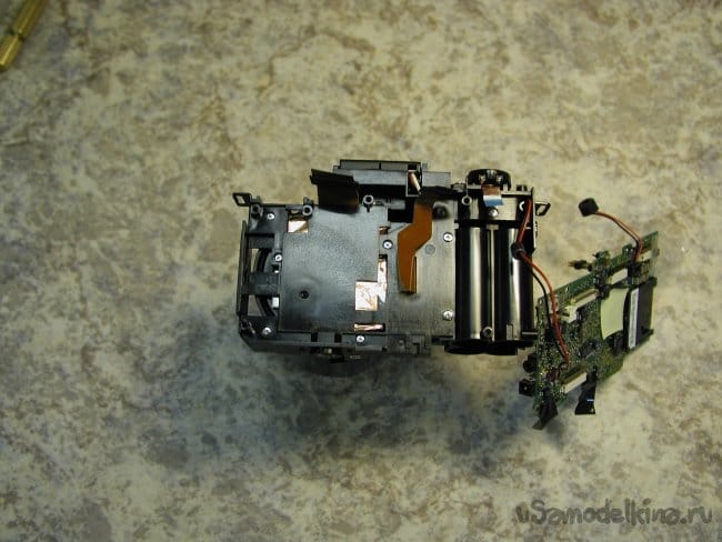 При тестовой проверке аппарат включается и сразу выключается, слегка скрипнув редуктором выдвижения объектива. Ощущение такое, что ничего не сломано, просто заклинило при ударе. Очень хочется в это верить. Буду пробовать аккуратно разнять заклиненный объектив и восстановить все функции.