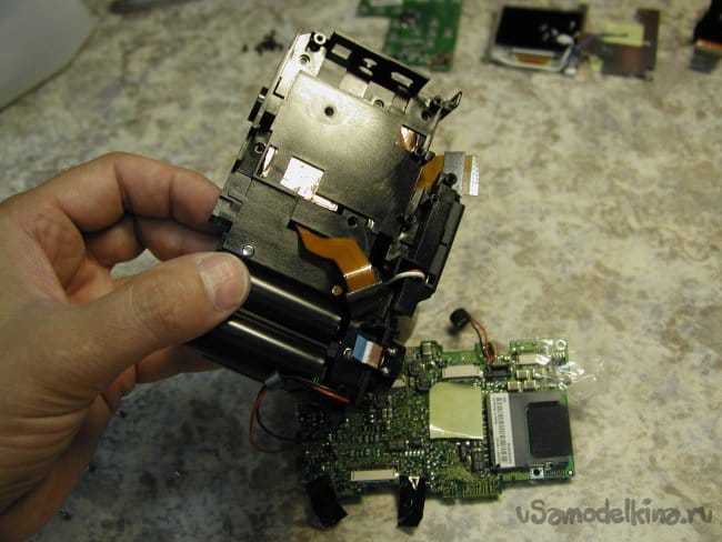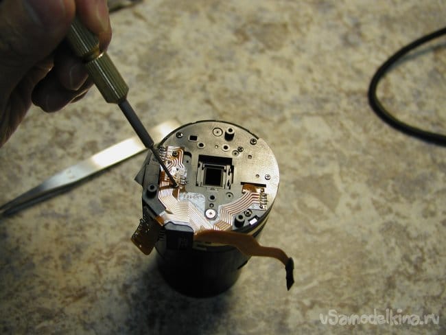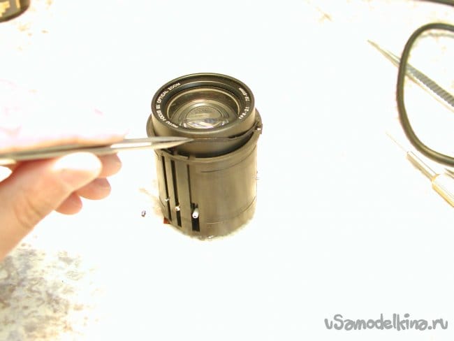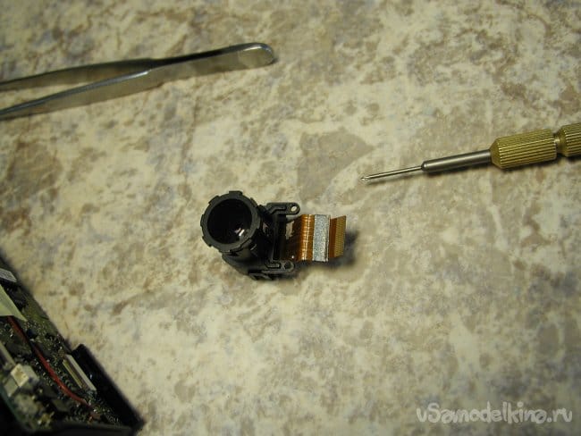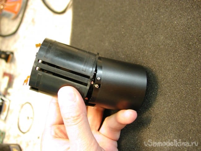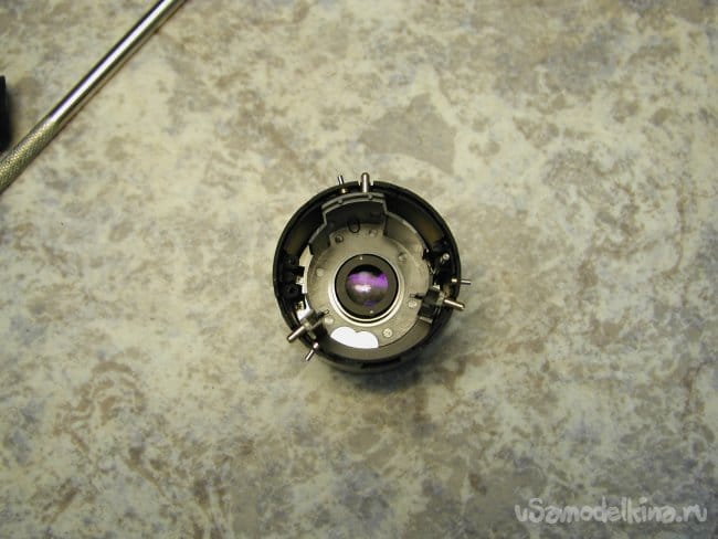 Откручиваю несколько винтиков крепления и извлекаю объектив из конструкции.