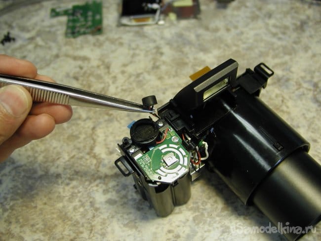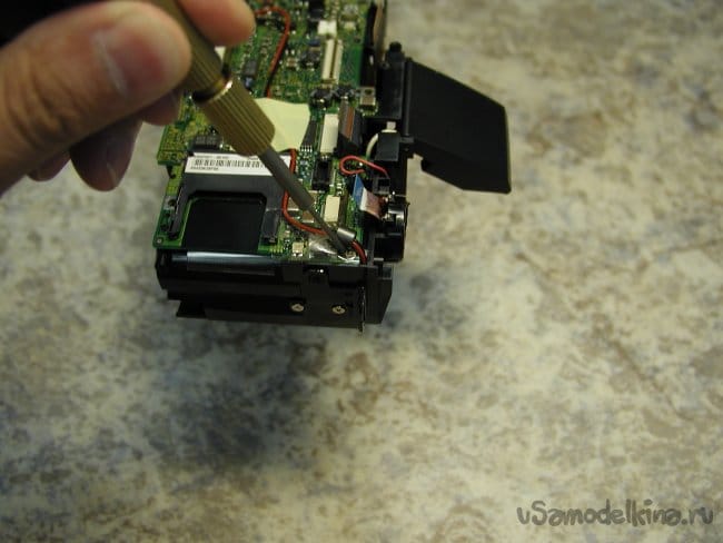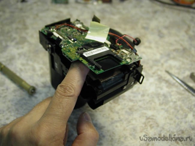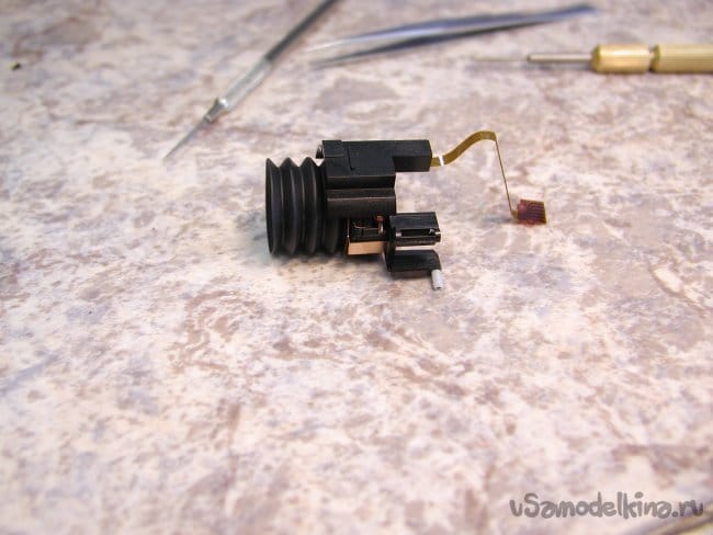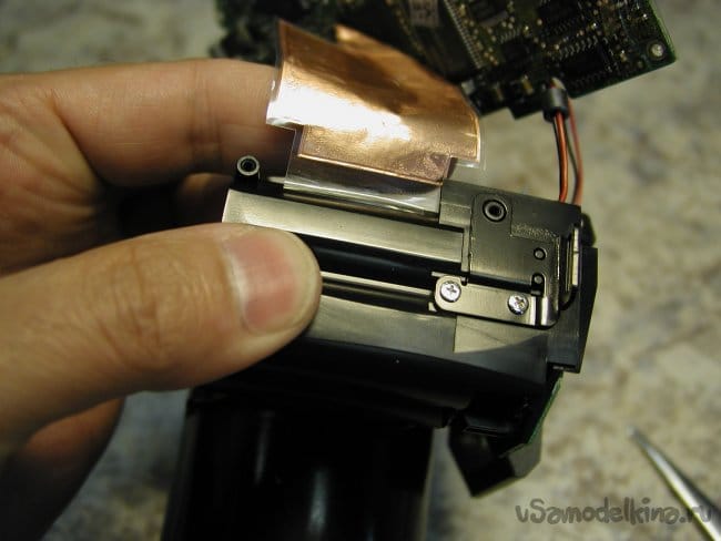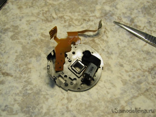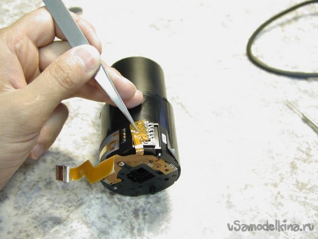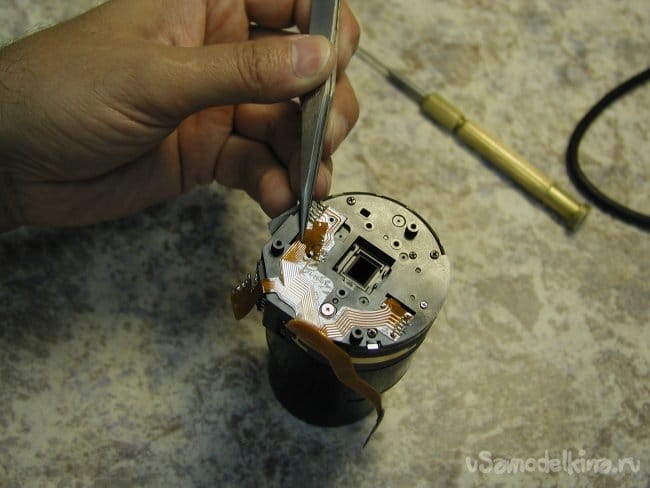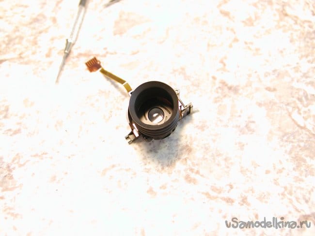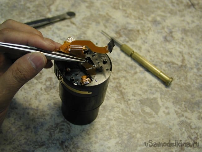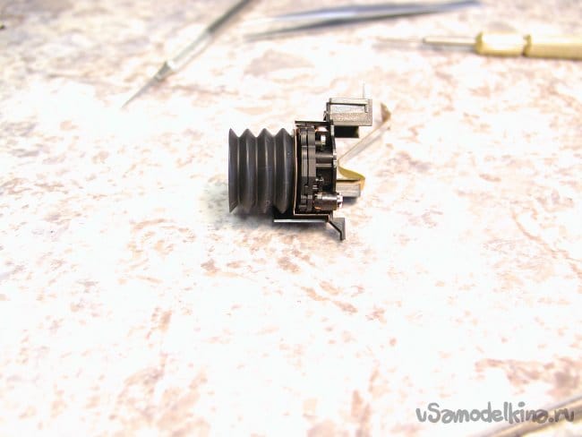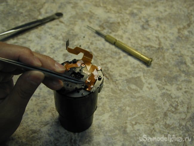 Демонтирую гребенку. Эти маленькие проволочки скользят по шлейфу и определяют положение объектива.