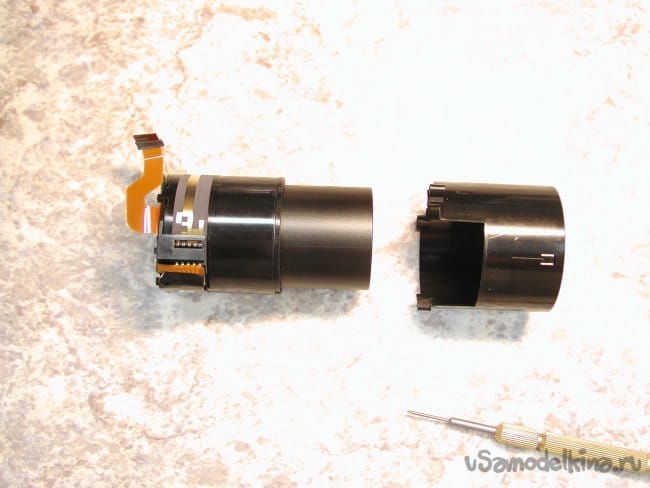 Самый большой цилиндр снял, но у меня еще практически не разобранный объектив. Нужно все раскидать и добраться до привода автофокуса.