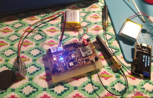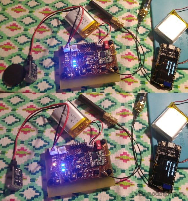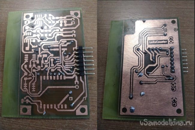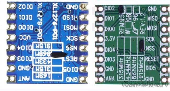 В отличие от прототипа в данном опытном образце я использовал LoRa-модуль RFM95W, являющийся функциональным аналогом модуля Semtech SX1276, применявшемся в прототипе. На изображении видно, что выводы расположены аналогично, отличается только печать.