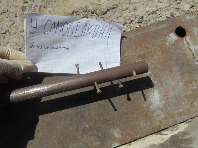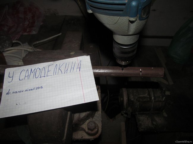 Также, нужно зачистить трубу(или арматуру) и с помощью дрели сделать 5-7 отверстий с каждой стороны трубы так, как показано на фотографии...