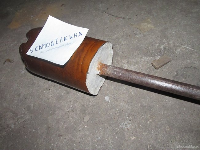 После этого нужно в отверстия в трубе засунуть саморезы или гвозди(это делается для того, чтобы в готовой гантели не проворачивалась труба)...