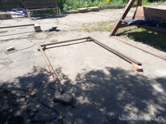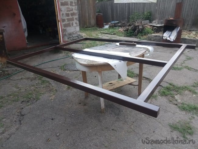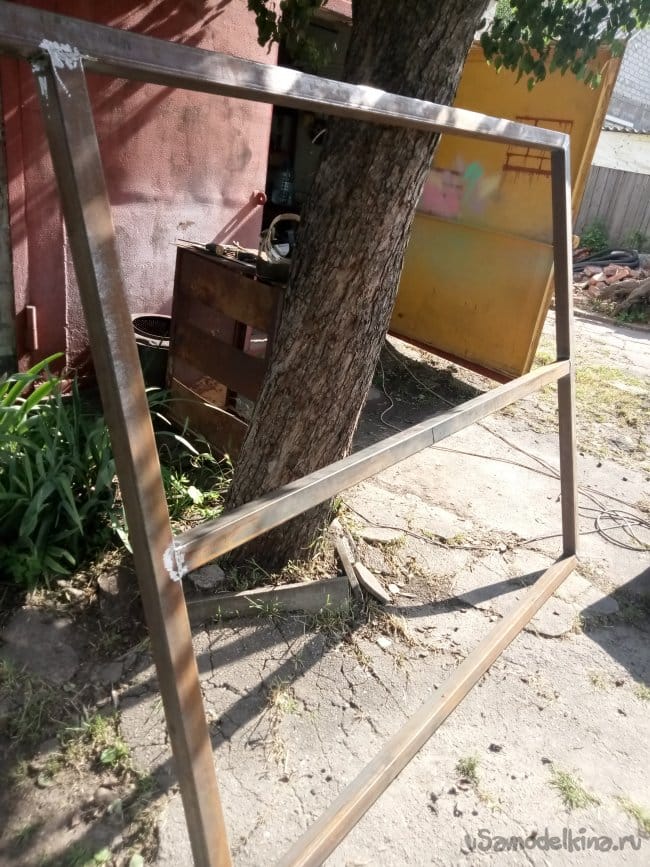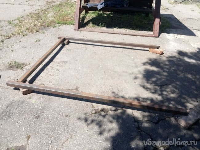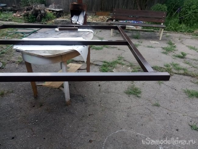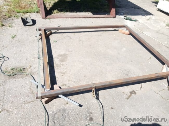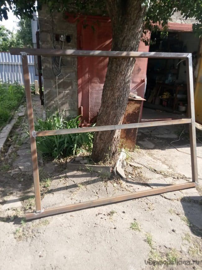 Итак, берём профильную трубу 50х50 толщина стенка 2мм и варим каркас 2м х 1.6 м.