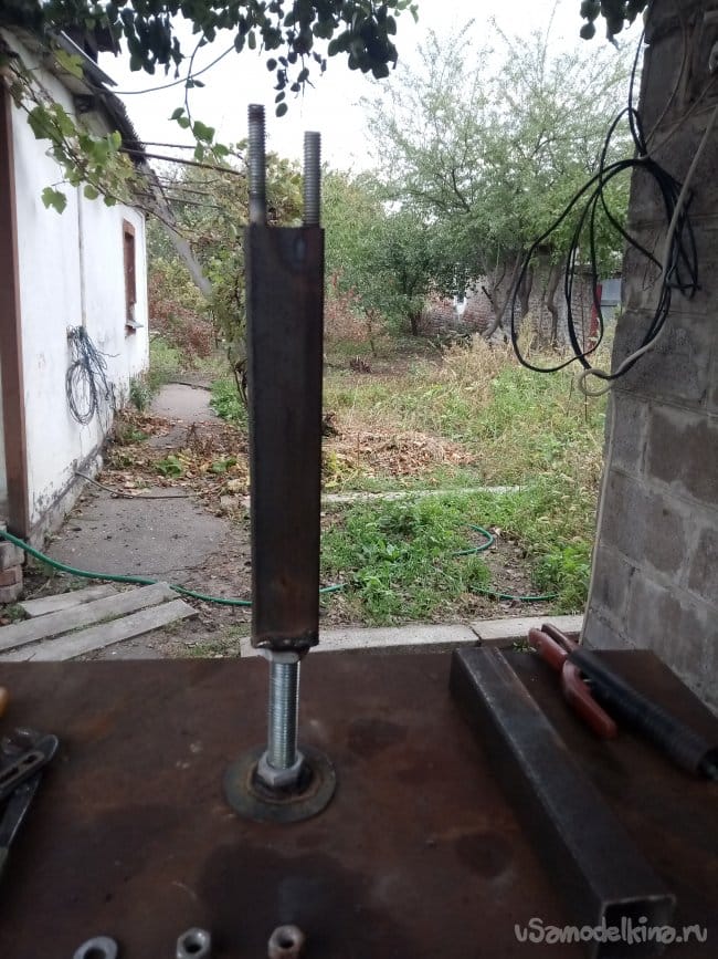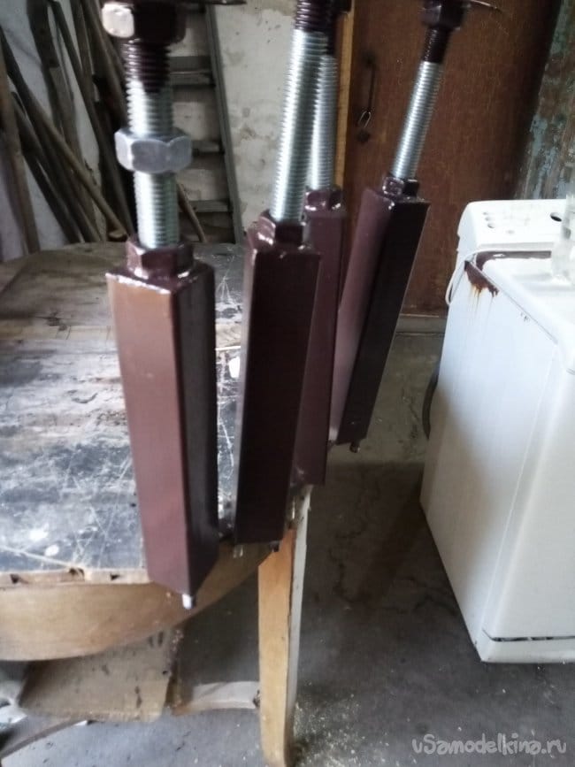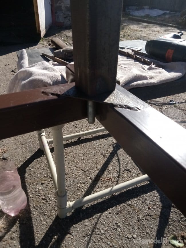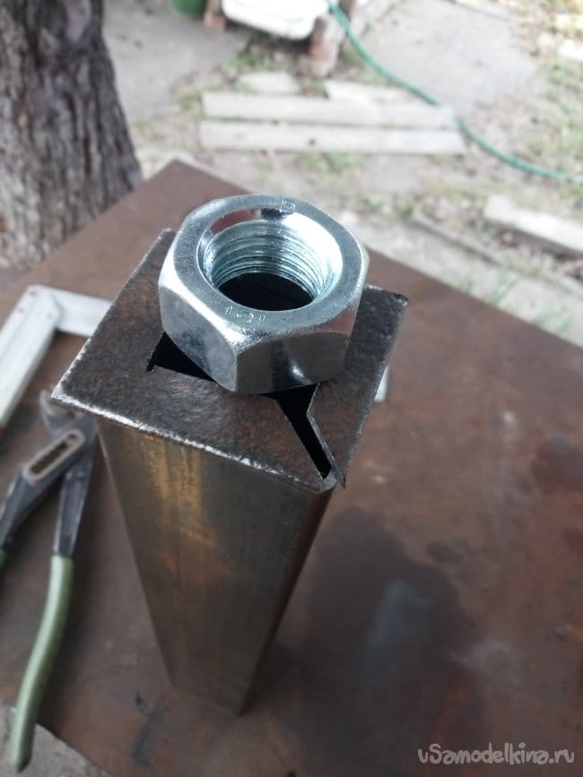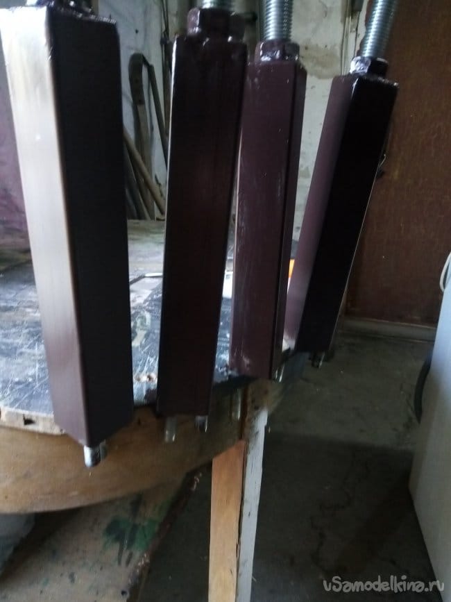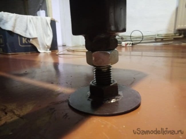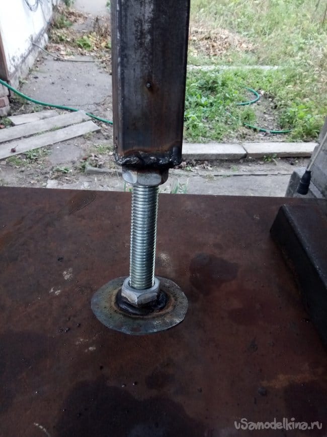 Потом надо было придумать нормальное крепление ножек. С самого начала я хотел их просто приварить и всё, но вся конструкция не входила в дверной проём
