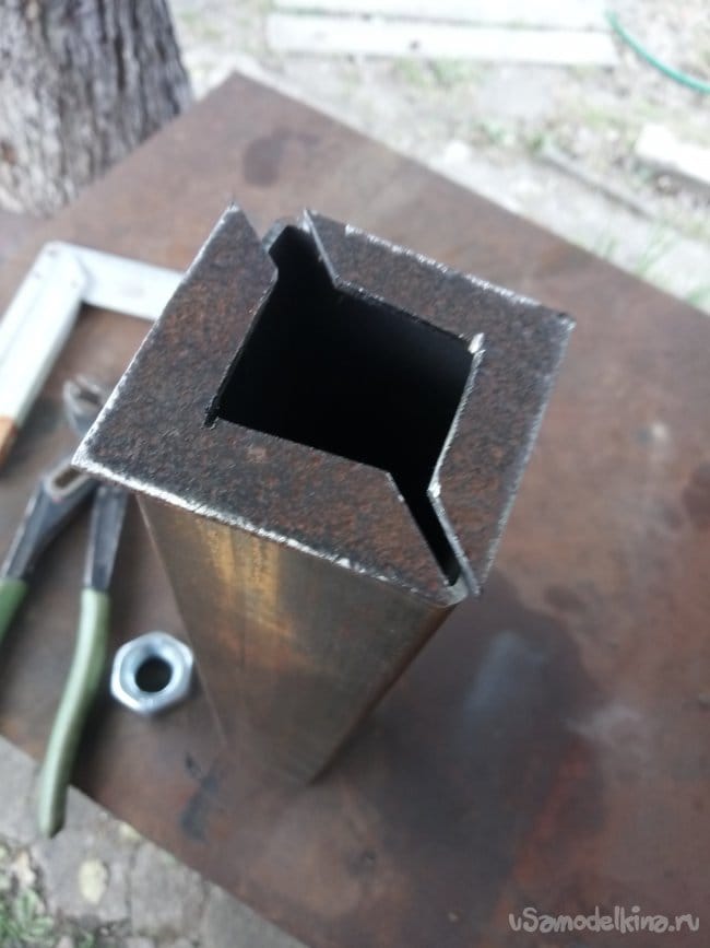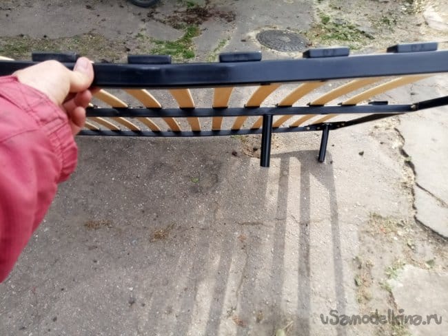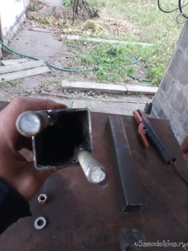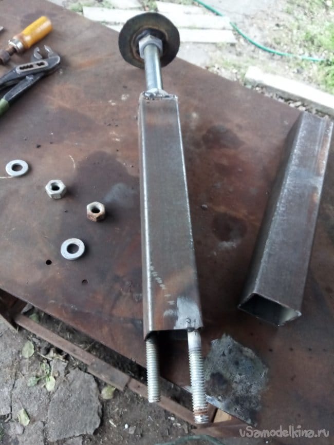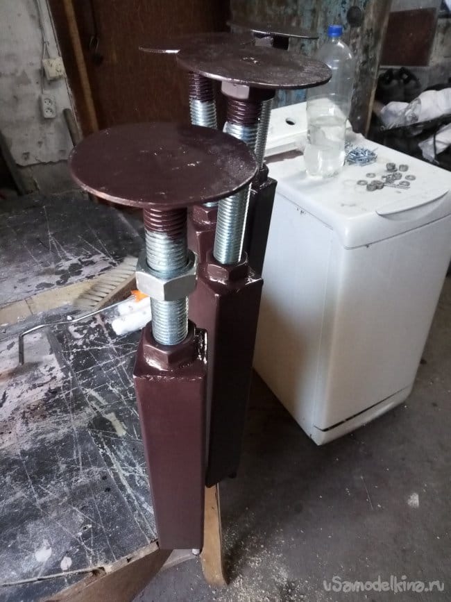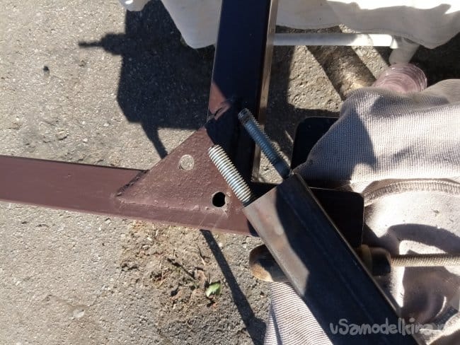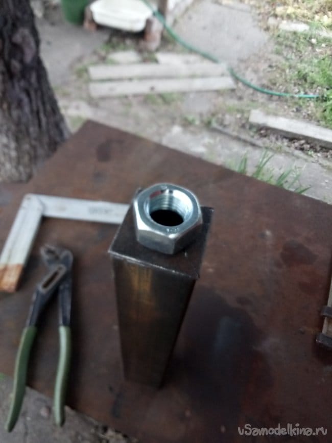 Потом надо было придумать нормальное крепление ножек. С самого начала я хотел их просто приварить и всё, но вся конструкция не входила в дверной проём