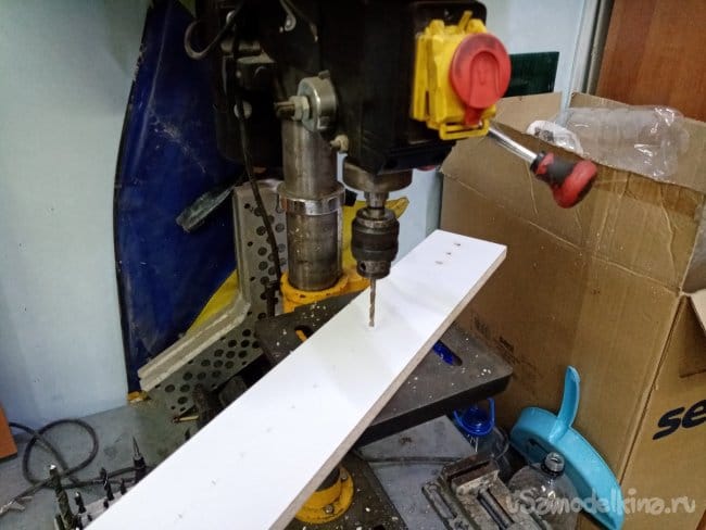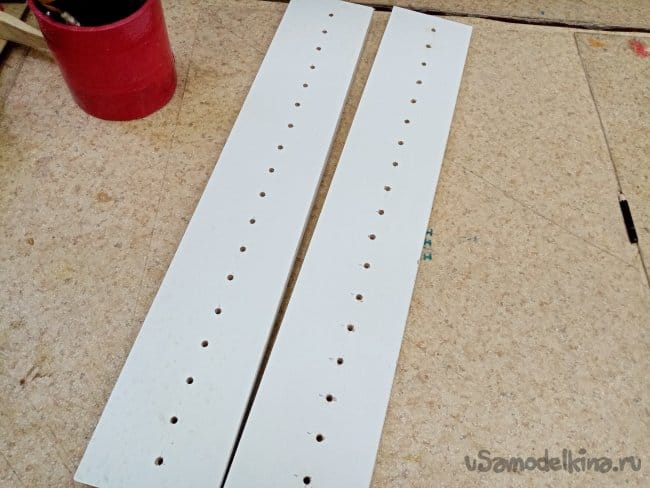 просверливаю ряд отверстий в соответствии с разметкой в двух пластинах.