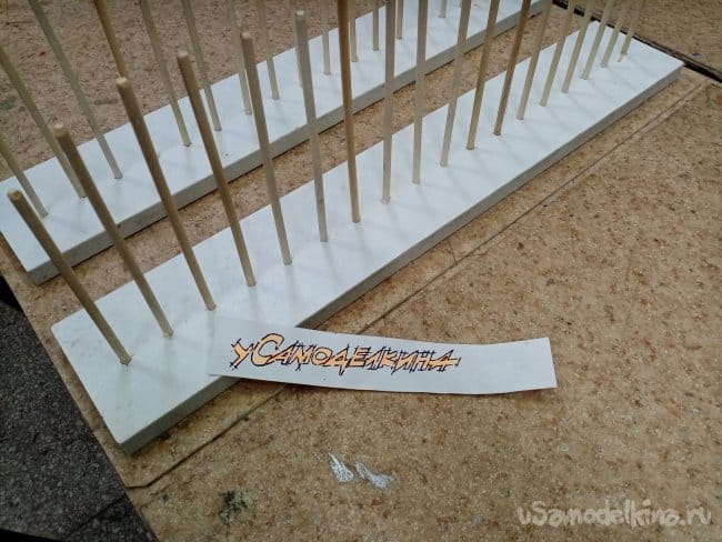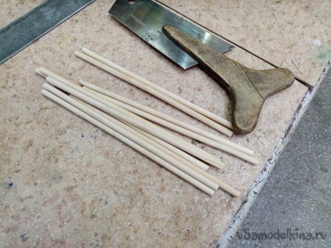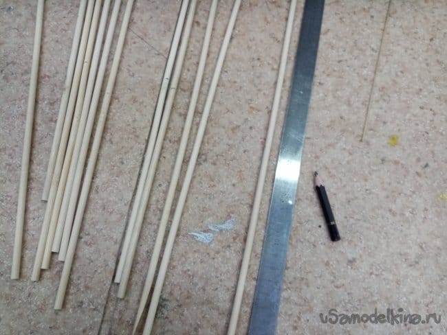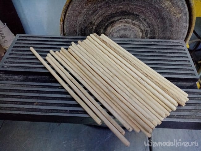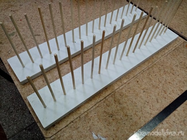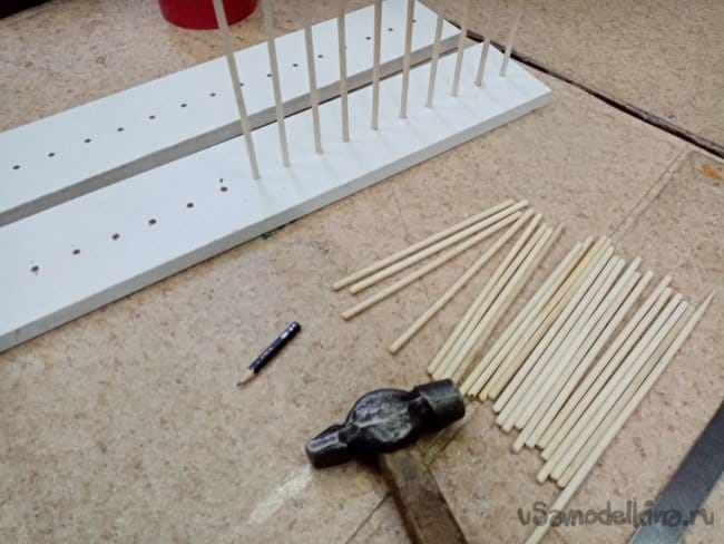 Начинаю закреплять бамбучины. В отверстия входят достаточно туго.