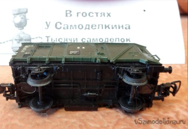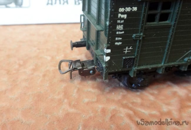 После сборки сцепки можно в соответствующие пазы тележки установить колесные пары, они тоже должны свободно вращаться. Если отверстия окажутся малы, то их необходимо расширить надфилем.