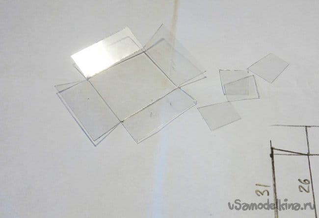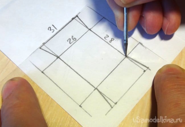 Для того, чтобы сделать имитацию стекла в кабине, нужно на листе бумаги нарисовать чертеж развертки.