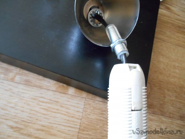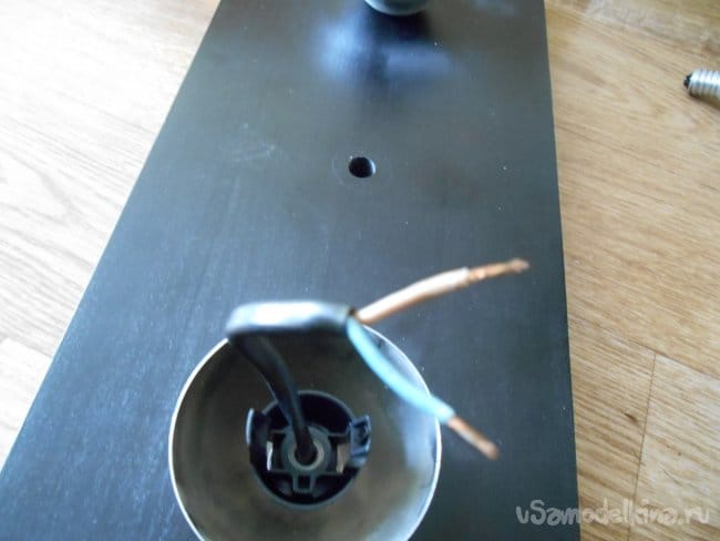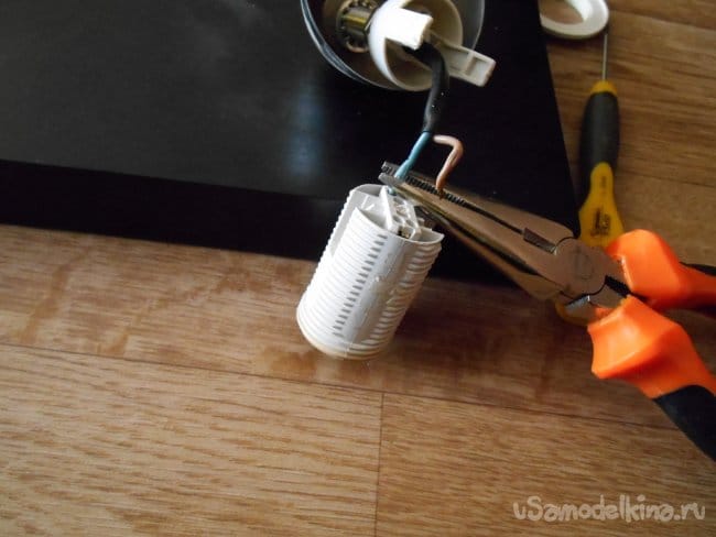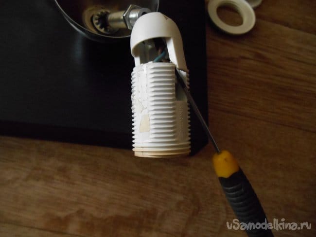 Вкручиваю, значит, нижнюю часть патрона на место предварительно протянув провода.