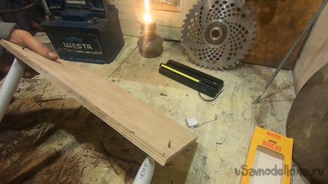 Под аккумулятор сделана подставка из фанеры, в итоге грязный аккумулятор не будет стоять на столе.