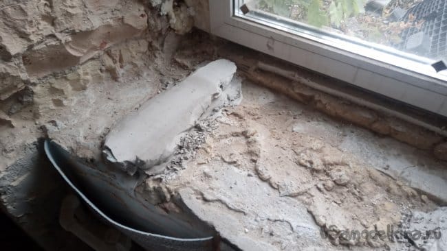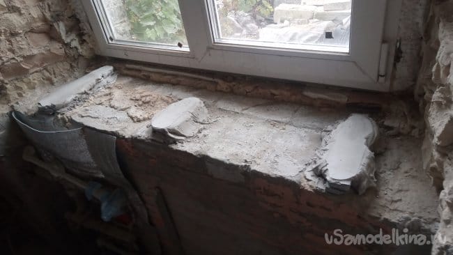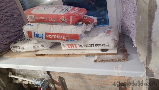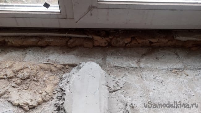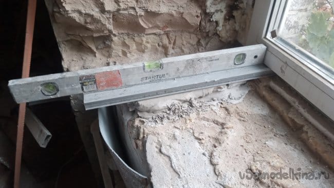 Теперь необходимо сделать "маяки" для установки подоконника. (Потому что ровной поверхности у меня нет нигде!))))