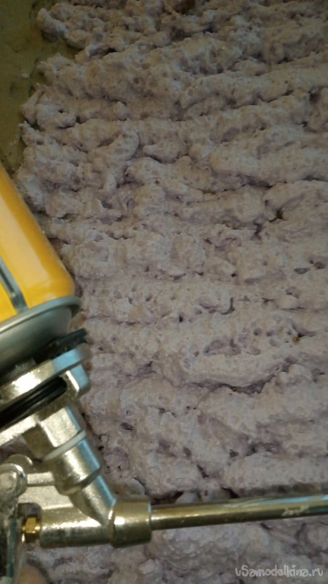 С его помощью, установив подоконник вертикально, я закачал пену на всю длину его каналов: