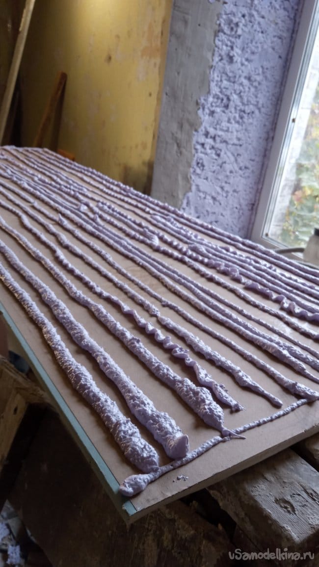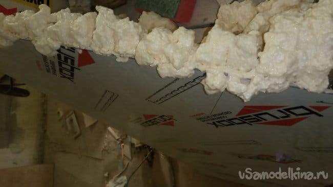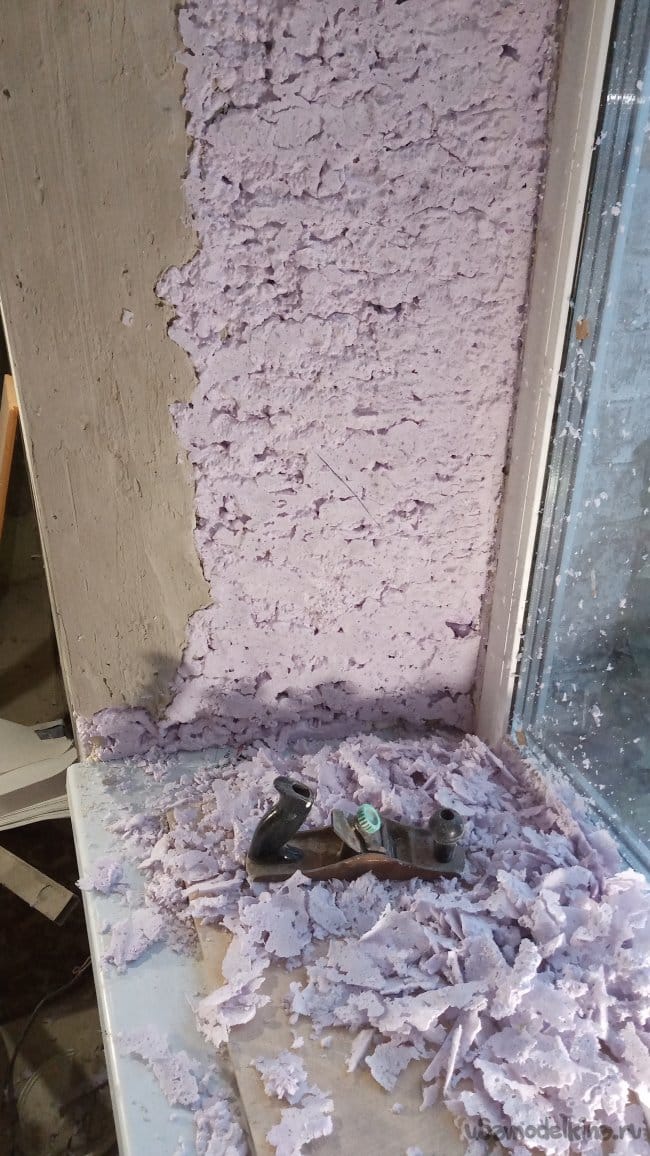 Придя на следующий день, я демонтировал доски опалубки, а клей-пену подровнял обычным рубанком, сформировав плоскости: