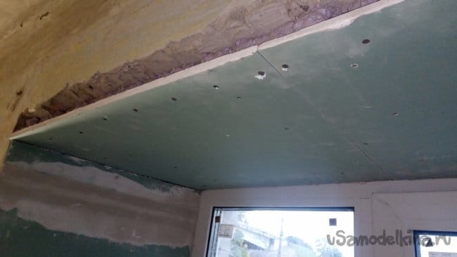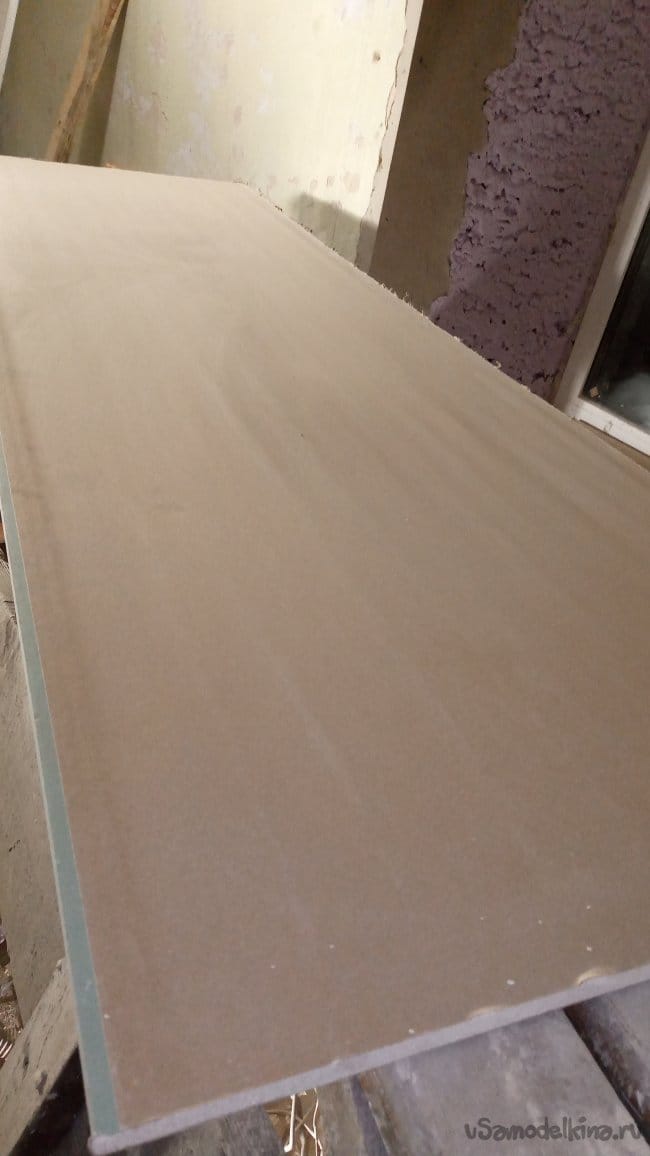 К тому-же, У меня не было цельного куска гипсокартона. Пришлось вырезать две половинки.