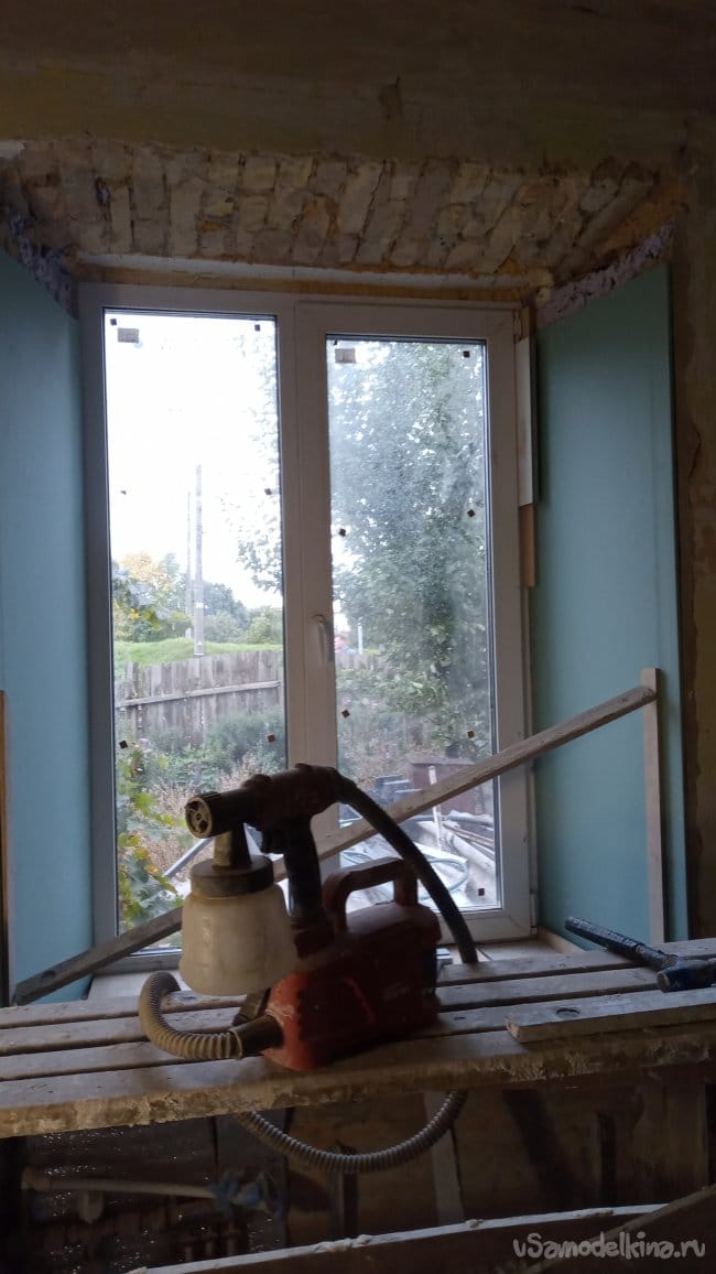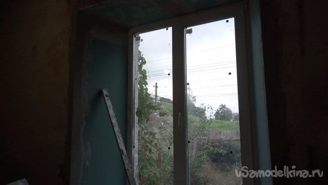 Окна я установил ещё в прошлом году. В остальных комнатах уже и откосы окультурил... Вот, дошёл черёд до последнего..
