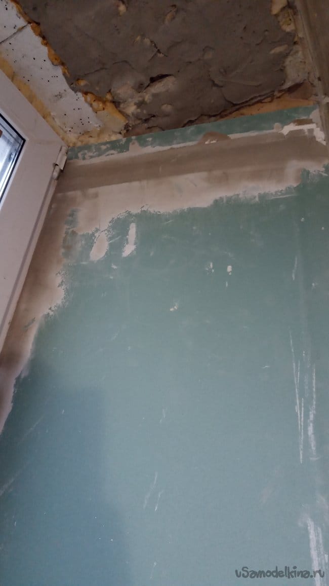 После чего я вырезал из влагостойкого гипсокартона листы по размеру откосов и приклеил их к этим плоскостям. Тоже на клей-пену:
