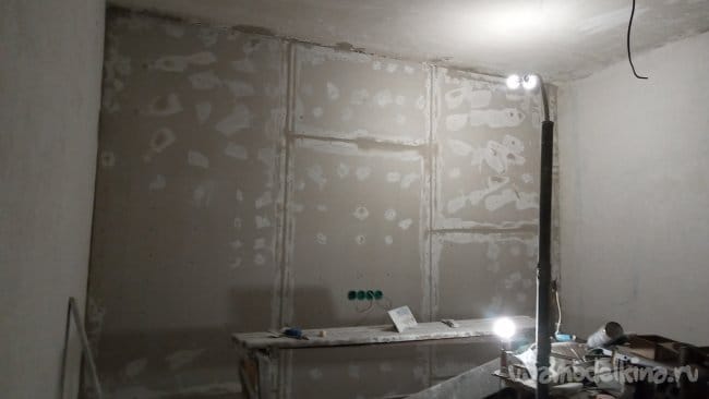 Финишное выравнивание (шпатлёвку) я буду делать позже. После того, как будут готовы потолки и откосы окон и дверей.
