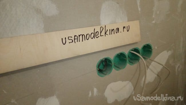 Подрозетники я выбрал пластиковые, для полых стен. Перед установкой тщательно запихал под них стекловату. (Заранее были выбиты более глубокие полости). Это для того, чтобы, опять-же, подрозетник, являясь частью звукопринимающего слоя, не контактировал со стеной, упираясь в неё.