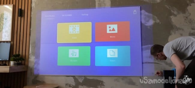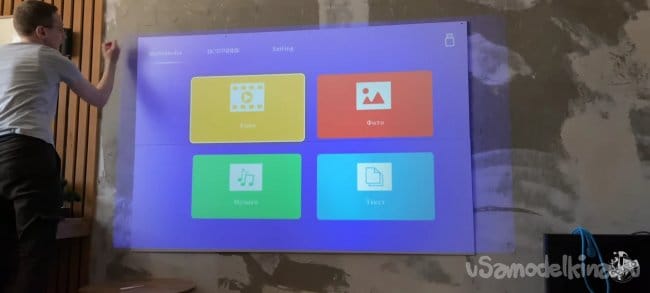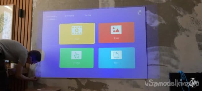 Я начал с того, что измерил размер изображения которое проецируется на стену. Выбираю оптимальный режим моего проектора, для чёткой и яркой картинки. У меня получилось 2200х1200мм. У вас может получиться меньше или больше. От этого зависит размер ткани которая вам понадобится!