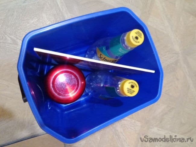 4. Из пластика (он мягкий) выкраиваем будущий разделитель. Используем простой ножик. Пару раз надрезать и потом переломить требуется.