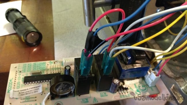 Измерения показали обрыв первичной обмотки. У первичной обмотки есть защитный термопредохранитель на 125°C, расположенный на самой обмотке. В моей практике была замена термопредохранителя, возможно здесь похожий случай. Но сначала решил проверить плату управления. У трансформатора две выходные обмотки 7 и 11 В переменного напряжения. Подал с двух блоков питания 8 и 14 В постоянного напряжения. Плата заработала. Так как плату до меня уже пытались "диагностировать", решил проверить ее работу. Закоротил контакты разъема концевиков, включилось маленькое реле возле трансформатора. Нажимаю старт, реле управления магнетроном включилось. Отлично! Таймер отсчитал время и реле выключилось. Проверка реле включающее гриль заняла больше времени, пришлось разбираться, как включается гриль. Попутно обнаружил глючный энкодер. Им займемся позже.