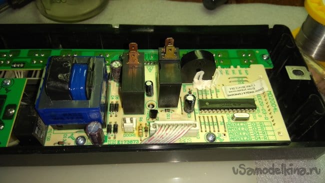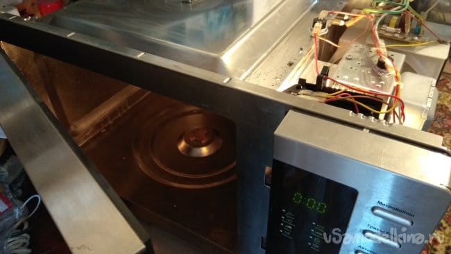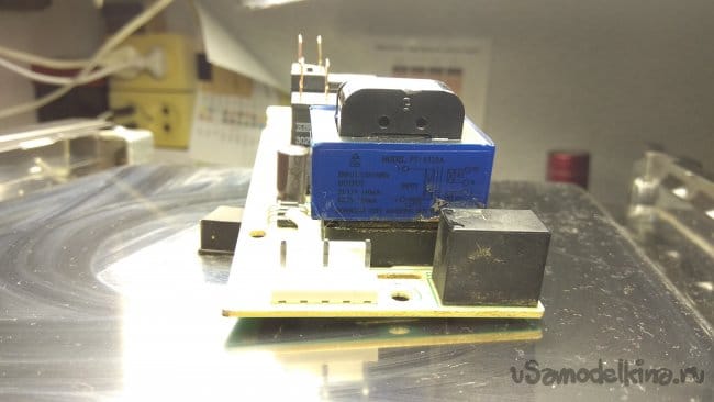 Началось все с того, что на микроволновку пролили физраствор. Кто не знает, физраствор это смесь дистиллированной воды и натрия хлорида. На один литр воды девять граммов соли. Сначала у владельца микроволновки выбило УЗО, после включения УЗО через несколько минут послышался громкий хлопок, табло печки погасло. Владелец промыл плату управления спиртом, но это не помогло.