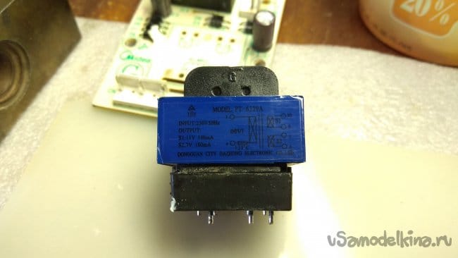 Займемся трансформатором. Он стоит недорого, около $12. Но вдруг получится отремонтировать, тем более где-то в загашнике лежит термопредохранитель для него.