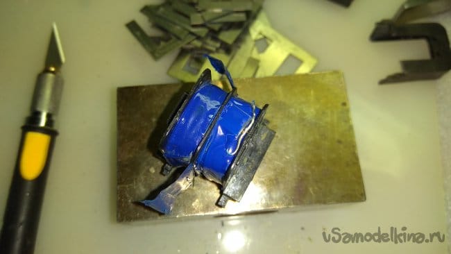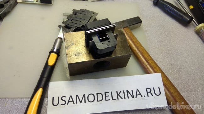 Он залит лаком, приходится аккуратно рассоединять пластины скальпелем. Первая пластина достается с трудом, далее легче.